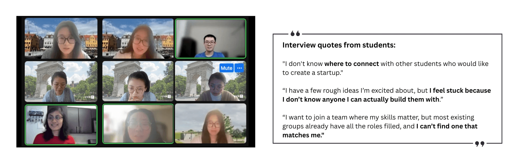University students are eager to build startups but get stuck working alone. Teams can’t find members, individuals can’t find teams, and early ideas die without peer support—because there’s no effective way to connect the right students at the right time.